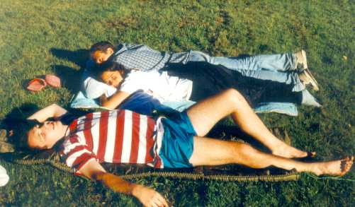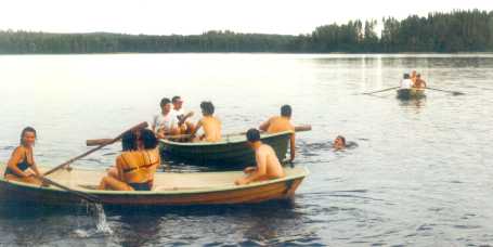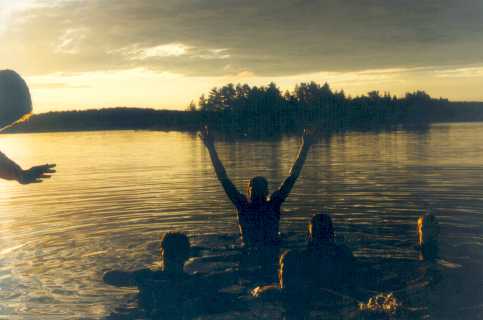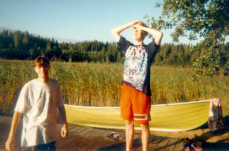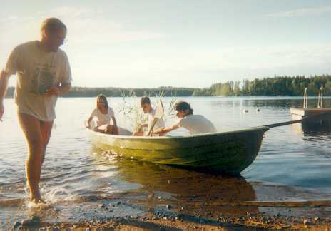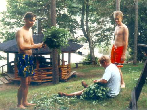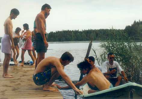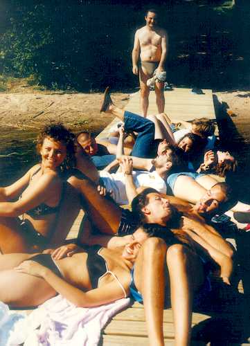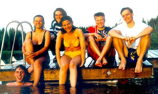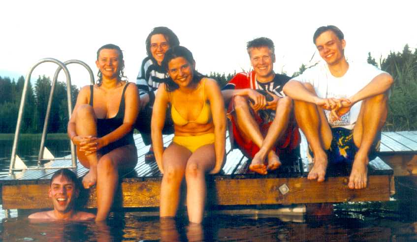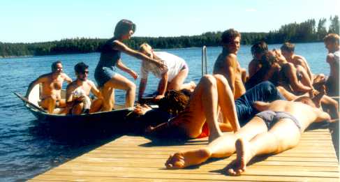 This was one of the highlights of the summercourse: in 3 days we visited 2 cottages, drove close to a thousand km. around Finland, and saw nature as it is non-existent in Belgium. Lake-Finland is an area to the north of Helsinki, where there are thousands and thousands of lakes. We saw 2 of them, one was to the north-west of Tampere, the other was straight east from the first, close to the Russian border (or so they said ;-) ). And we had sauna and swimming and sunbathing and lakes and FUN...FUN...FUN. So you would expect me to have some great pictures of it, and yes, I have... and many too!